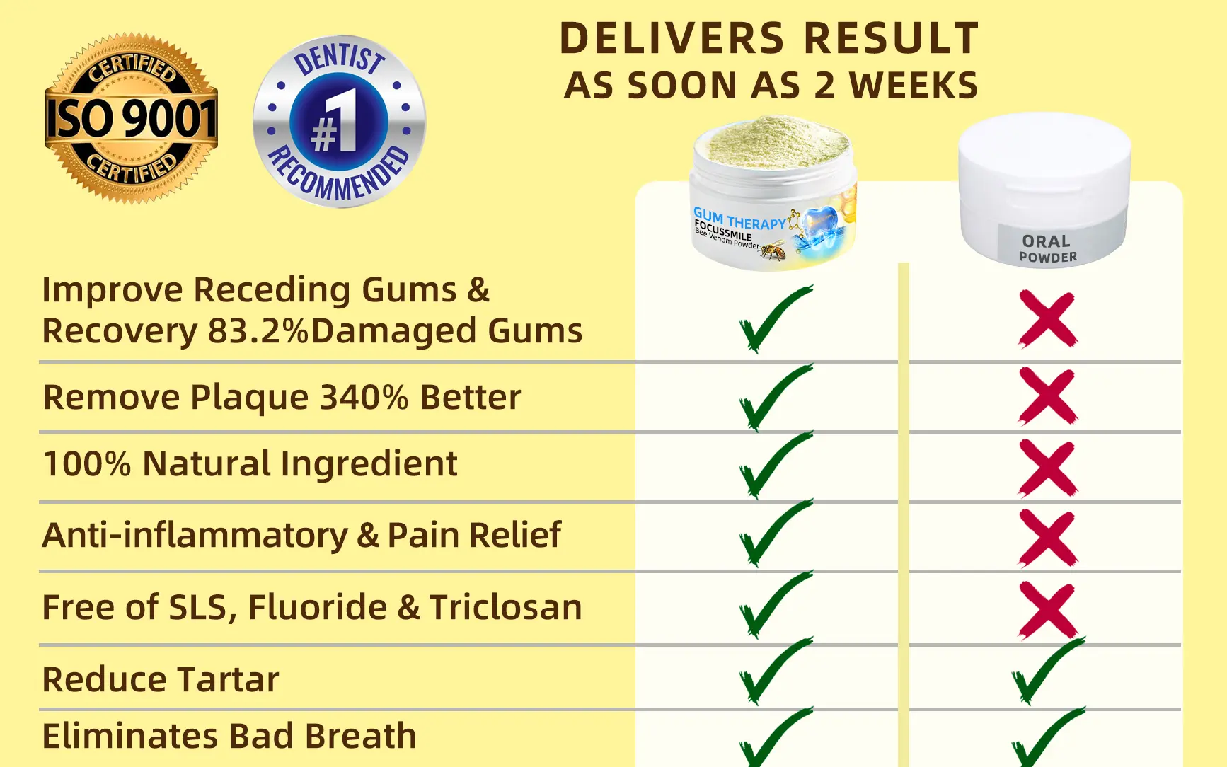 “I was struggling with periodontitis, which left my gums painful, swollen, and prone to bleeding whenever I brushed my teeth. A friend recommended I try ππ²π’π€ππ²β’ Focussmile Bee Venom Treatment Oral Powder, so I decided to give it a shot. Iβve been using it for 1 week, and it already made a noticeable difference. The inflammation has reduced, the bleeding is nearly gone, and my gums feel much healthier and stronger. Thanks to this product, I can eat and brush without discomfort and feel confident Iβm taking control of my gum health.”Β – David Smith – Chicago
