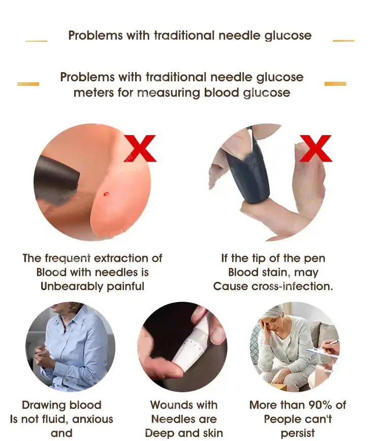 No more invasive and risky methods of blood sugar testing! Measure your blood sugar safely, without the risk of cross-infection or needle wounds on your fingers.
