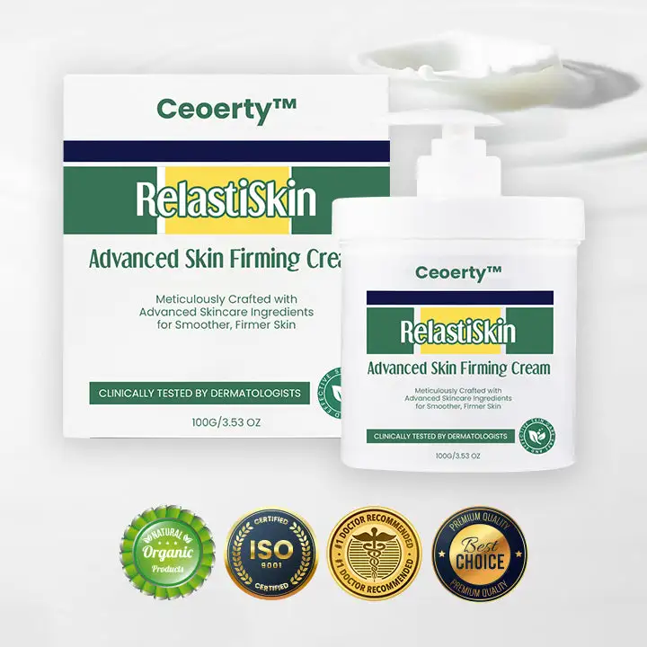 Ceoerty™ RelastiSkin Advanced Skin Firming Cream is the ultimate solution for those seeking youthful, rejuvenated skin. This advanced formula combines powerful firming agents with revitalizing ingredients to lift, tighten, and smooth your skin. Designed for all skin types, this targets sagging, fine lines, and wrinkles, leaving your skin visibly firmer and more radiant. Infused with nourishing antioxidants and moisture-locking compounds, it delivers long-lasting hydration while boosting your skin’s natural elasticity.