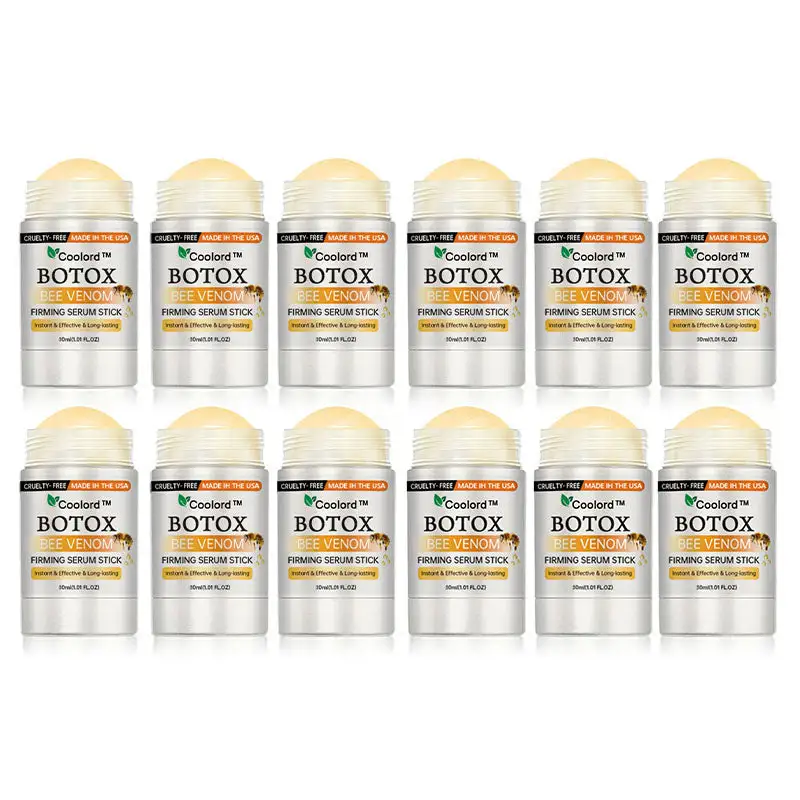 coolord ™ Botox Bee Venom Firming Serum Stick uses bee venom peptides to mimic the effects of Botox, relaxing facial muscles and reducing the formation of expression lines. At the same time, hyaluronic acid deeply hydrates the skin, making it plump and effectively smoothing fine lines and wrinkles. The combination of Acetyl Hexapeptide-8 and botulinum toxin targets deep wrinkles like forehead lines and crow’s feet, leaving your skin looking firmer and smoother.