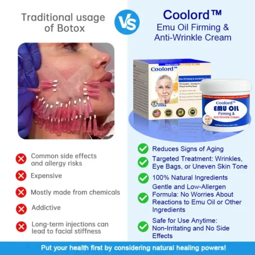 ✓ Scientifically Formulated: The formula of Coolord™ Emu Oil Firming & Anti-Wrinkle Cream is scientifically developed to maximize its effectiveness in promoting skin rejuvenation and enhancing your overall appearance.