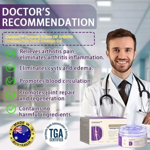 As an orthopedic surgeon, I highly recommend Coolord™ Turmeric & Emu Oil Arthritis Soothing Pain Relief Massage Gel for individuals dealing with joint pain, osteoarthritis, rheumatoid arthritis, and other inflammatory conditions. This gel combines the potent anti-inflammatory properties of turmeric and emu oil, working together to reduce pain, ease inflammation, and support joint health. Beyond pain relief, it also promotes tissue regeneration and aids in long-term joint recovery. Its unique formula helps repair damaged cartilage and supports overall mobility, offering lasting relief and improved joint function.