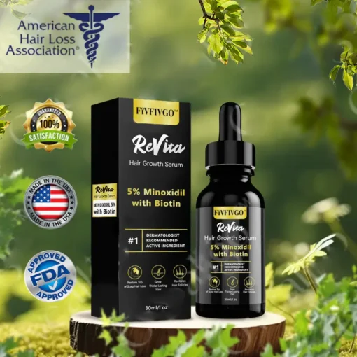 Harnessing the Power of Minoxidil and Biotin for Hair Revival: Stimulating Growth and Strength from the Roots Up with Fivfivgo™ ReVita Hair Growth Serum.