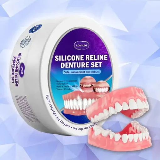 Opt for ultimate denture comfort with LOVILDS™ 𝐒𝐢𝐥𝐢𝐜𝐨𝐧𝐞 𝐑𝐞𝐥𝐢𝐧𝐞 𝐃𝐞𝐧𝐭𝐮𝐫𝐞 𝐒𝐞𝐭. Designed with customizable silicone, it offers immediate relief from soreness and ensures a lasting, secure fit. Safe and non-toxic, this set guarantees denture stability, allowing you to engage confidently in daily activities.
