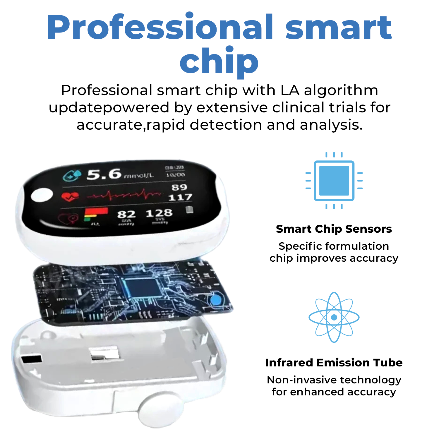 Designed for people with poor circulation, Nurbini™ utilizes a high-precision MCU chip to ensure accurate readings at all times. Ideal for people with weak or sick pulses, it accurately measures blood glucose levels, oxygen saturation and heart rate, even in low perfusion conditions. This advanced technology ensures reliable, efficient results every time, supporting effective health monitoring.