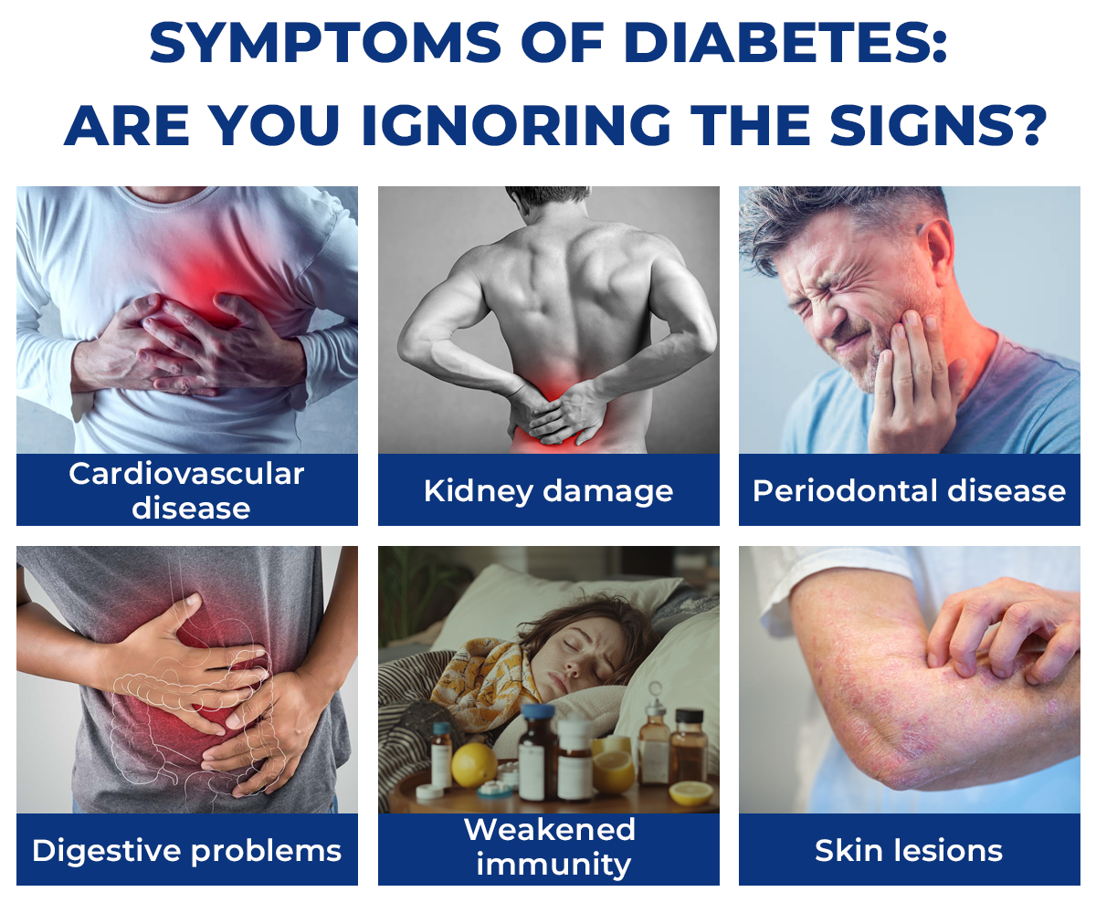 Frequent thirst, fatigue, blurred vision, and slow wound healing can be early signs of high blood sugar. Left unchecked, persistent high blood sugar can lead to nerve damage, poor circulation, and even eye problems. These issues may progress into more severe conditions like cardiovascular disease and kidney failure. Recognizing these symptoms early is crucial to avoiding long-term health risks.