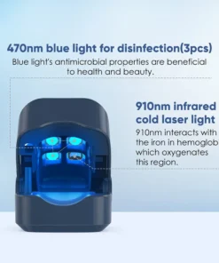 Blue light therapy is a medical method that uses a specific wavelength of blue light (470 nm) to treat nails. In blue light therapy, the patient’s nails are exposed to blue light with a wavelength of 470 nanometers, which penetrates the surface layer of the nail and produces a photodynamic response to the keratin in the nail. The photodynamic reaction causes keratin to combine with oxygen molecules to form toxic oxygen free radicals that damage or kill bacteria and fungi around the nail. Mo